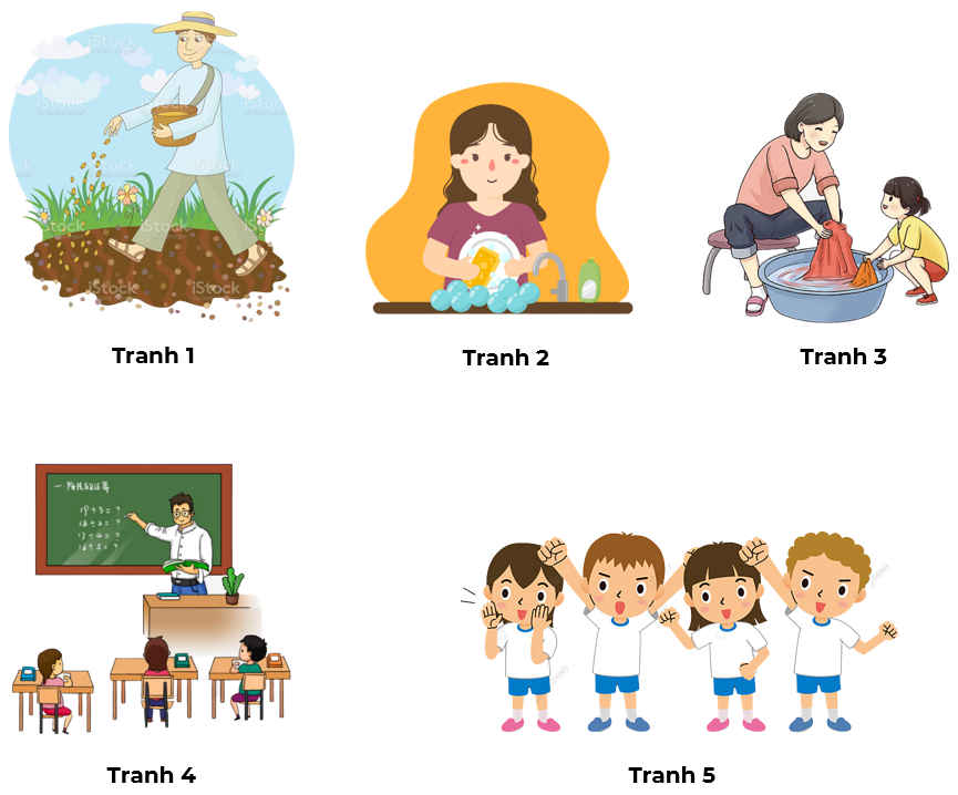 Quan sát các tranh dưới đây và xác định hoạt động trong tranh, các từ chỉ hoạt động chứa
