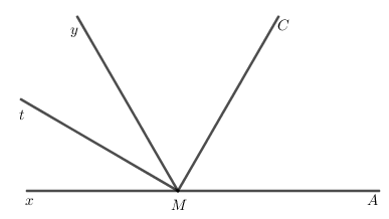 Cho \(\angle AMC = 60^\circ \). Tia \(Mx\) là tia đối của tia \(MA,My\) là phân giác của \(\angle CMx,Mt\)