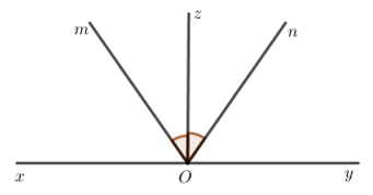 Cho góc bẹt \(\angle xOy\). Vẽ các tia \(Om,On\) cùng phía với \(xy\) sao cho \(\angle xOm = \angle yOn <