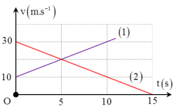 Cho đồ thị v - t của hai ôtô như hình vẽ. Ô tô (1) có khối lượng 1,2 tấn, ô tô (2) có khối lượng 1,9 tấn. Lực tác dụng lên hai ô tô có độ lớn lần lượt là: