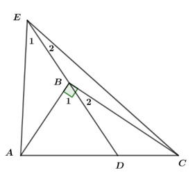 Cho tam giác \(ABC\) có \(\angle B = {90^0},\) gọi \(D\) là một điểm nằm giữa \(A\) và \(C.\) Lấy