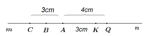 Trên tia An lấy 2 điểm K và Q sao cho AK = 3cm, AQ = 4cm.