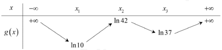 Cho hàm số bậc bốn \(y = f(x).\) Biết rằng hàm số \(g(x) = \ln f(x)\)có bảng biến thiên như