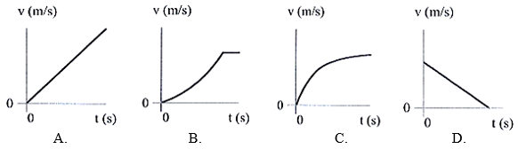 Một tàu thủy bắt đầu rời cảng, động cơ của tàu được vận hành để tàu đạt được tốc độ ổn định sau một thời gian. Hình nào sau đây mô tả đúng dạng đồ thị tốc độ - thời gian của tàu thủy?