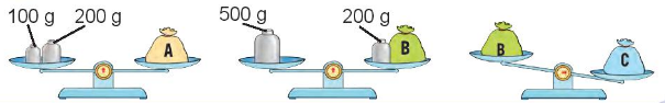 Túi nào nặng nhất trong ba túi A, B, C như hình dưới
