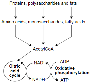 Trong quá trình dị hóa, các phân tử lớn như polisaccarit, lipid, acid nucleic và protein sẽ bị phá vỡ thành các đơn vị cấu trúc nhỏ hơn. Chẳng hạn như monosaccarid, các axit béo, các nucleotide và các amino acid.