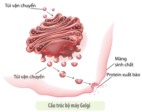Bộ máy Golgi gồm các túi dẹp nằm song song với nhau nhưng tách rời nhau.