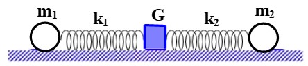 Hình bên mô tả một hệ gồm hai con lắc lò xo nằm ngang, đồng trục cùng được gắn vào giá G.