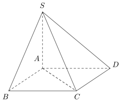 Cho khối chóp S.ABCD có đáy là hình vuông cạnh bằng 2, \(SA \bot \left( {ABCD} \right)\) và SAC là tam