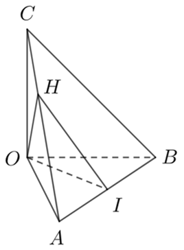 - Sử dụng \(\dfrac{{{V_{AOHI}}}}{{{V_{OABC}}}} = \dfrac{{\dfrac{1}{3}d\left( {H,\left( {OAI} \right)} \right).{S_{OAI}}}}{{\dfrac{1}{3}d\left( {C,\left( {OAB} \right)} \right).{S_{OAB}}}}\).