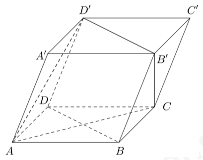 Gọi V là thể tích của khối hộp ABCD.A’B’C’D’. \({V_1}\) là thể tích của khối tứ diện