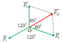 Cho ba lực đồng quy cùng nằm trong một mặt phẳng, có độ lớn bằng nhau và từng đôi một làm thành góc \({120^0}\) (hình vẽ). Tìm hợp lực của chúng.