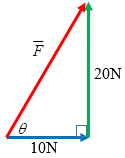 Hình vẽ biểu diễn giản đồ vecto để xác định hợp lực của hai lực đó. Sử dụng công thức lượng giác để tính góc của hợp lực so với phương ngang.