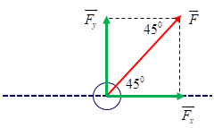 Một lực 250 N tác dụng lên vật theo phương nghiêng một góc \({45^0}\) so với phương thẳng