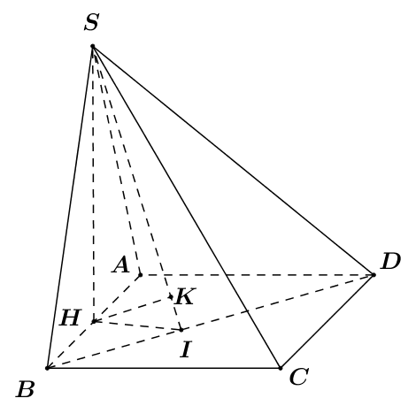 Trong (ABCD) kẻ \(HI \bot BD\,\,\left( {I \in BD} \right)\), trong (SHI) kẻ \(HK \bot SI\). Chứng minh \(HK \bot \left( {SBD} \right)\).