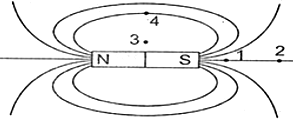 Lực từ tác dụng lên kim nam châm trong hình sau đặt ở điểm nào là mạnh