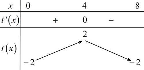Đặt \(t = \sqrt {8x - {x^2}} - 2\), tìm khoảng giá trị của t.