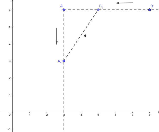 Hai con tàu đang ở cùng một vĩ tuyến và cách nhau 5 km. Đồng thời cả hai con tàu cùng khởi hành, một tàu chạy về hướng nam với vận tốc 6 km/giờ, còn tàu kia chạy về vị trí hiện tại của tàu thứ nhất với vận tốc 7 km/giờ. Hãy xác định thời điểm mà khoảng cách của hai tàu là nhỏ nhất.