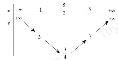 Lập bảng biến thiên của đồ thị \(y = {x^2} - 5x + 7\) trên đoạn \(\left[ {1;5} \right]\).