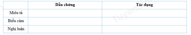 Đọc văn bản và hoàn thành bảng sau để thấy rõ sự kết hợp của các yếu tố miêu tả, biểu cảm, nghị luận trong văn bản: