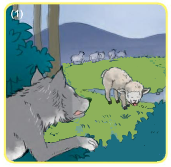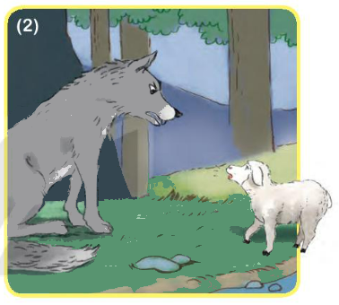 Thấy sói, cừu non hoảng hồn. Cố trấn tĩnh, cừu non bước tới trước mặt sói, nói: