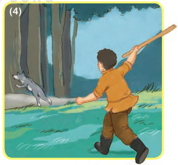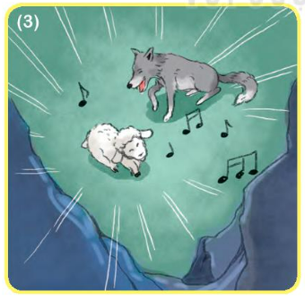 Đoạn chuyện dưới đây ứng với bức tranh nào? Thấy sói, cừu non hoảng hồn. Cố trấn tĩnh,