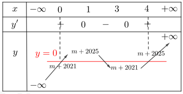 Cho hàm số \(y = {x^3} - 6{x^2} + 9x + m + 2021\) có đồ thị là \(\left( {{C_m}} \right)\) cắt trục hoành
