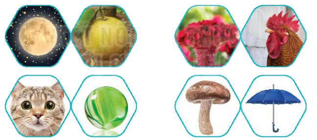 Quan sát tranh, tìm những sự vật có đặc điểm giống nhau (hình dạng, màu sắc, …). Đặt câu