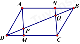 Cho hình bình hành \(ABCD\). Trên các đoạn thẳng\(DC,\,\,AB\) theo thứ tự lấy các điểm \(M,\,\,N\)