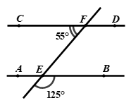 Biết \(\angle CFE = {55^0};\angle {E_1} = {125^0}\). Khi đó: