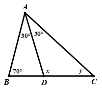 Tính số đo của góc \(x,y\) trong hình vẽ dưới