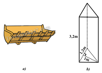Gàu xúc của một xe xúc (Hình a) có dạng gần như một hình lăng trụ đứng tam giác với các kích thước đã cho ở hình b). Để xúc hết \(40{m^3}\) cát, xe phải xúc ít nhất bao nhiêu gàu?