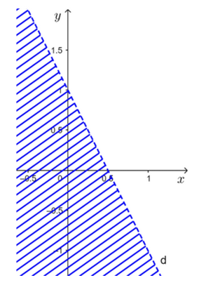 Nửa mặt phẳng không bị gạch chéo ở hình dưới đây là miền nghiệm của bất phương trình