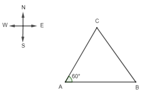 Hướng N300E là hướng tạo với hướng bắc một góc 300 và tạo với hướng đông một góc \({90^0} - {30^0} = {60^0}\).
