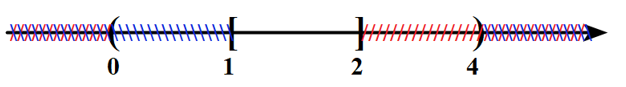 Cho hai nửa khoảng \(M = \left( {0;2} \right],\,\,N = \left[ {1;4} \right)\). Tìm \(E = {C_\mathbb{R}}\left( {M \cap N} \right)\).