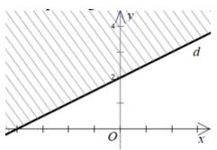 Trong hình vẽ dưới đây, nửa mặt phẳng bờ là đường thẳng d có chứa điểm O và kể các đường thẳng d là miền nghiệm của bất phương trình