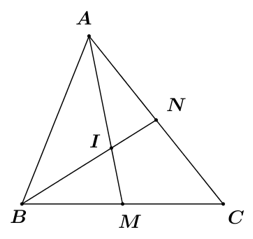 Sử dụng công thức tính độ dài đường trung tuyến tính AM, BN theo a, b, c.