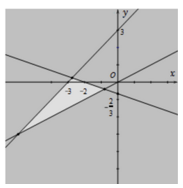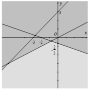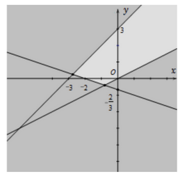 Miền nghiệm của hệ bất phương trình \(\left\{ \begin{array}{l}x - 2y < 0\\x + 3y > - 2\\y - x <
