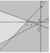 Miền nghiệm của hệ bất phương trình \(\left\{ \begin{array}{l}x - 2y < 0\\x + 3y > - 2\\y - x < 3\end{array} \right.\) là phần không tô đậm của hình vẽ nào trong các hình vẽ sau?