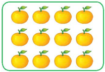 Chia 12 quả cam thành 3 phần bằng nhau. \(\dfrac{1}{3}\) số quả cam là: