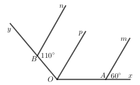Cho \(\angle xOy = 130^\circ \). Trên tia \(Ox\), lấy điểm \(A\), trên tia \(Oy\) lấy điểm \(B\). Trong các góc \(\angle xOy\) vẽ các tia \(Am,Bn\) sao cho \(\angle xAm = 60^\circ ;\angle OBn = 110^\circ \). Chứng minh \(Am//Bn\).