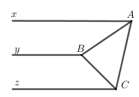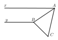 Cho hình vẽ, biết \(Ax//By,\angle CBy > \angle ACB\). Chứng minh \(\angle yBC = \angle xAC + \angle