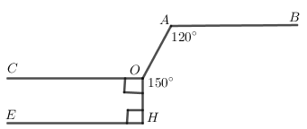 Cho hình vẽ. Ba đường thẳng \(AB,OC,HE\) có song song với nhau không? Vì