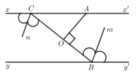 a) Biết \(\angle x'AO + \angle OBy' = 270^\circ ;\angle AOB = 90^\circ \). Chứng minh rằng: \(xx'//yy'\)