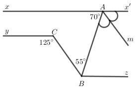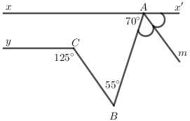 a) Biết \(\angle xAB = 70^\circ ,\angle ABC = 55^\circ ;\angle BCy = 125^\circ \). Chứng minh rằng: \(xx'//Cy\)