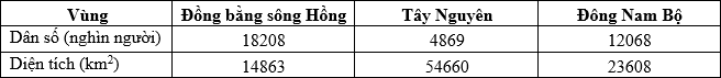 Cho bảng số liệu sau: DIỆN TÍCH VÀ DÂN SỐ MỘT SỐ VÙNG NƯỚC TA NĂM 2006 Mật độ dân số