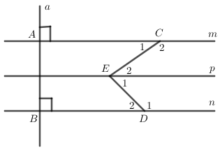 b) Qua \(E\) vẽ đường thẳng \(p\) song song với đường thẳng \(m\) như hình vẽ. Chứng minh: \(p//n\)