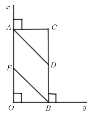 Cho \(\angle xOy = 90^\circ \). Trên \(Ox\) lấy \(OA = 4cm\), trên \(Oy\) lấy \(OB = 2,5cm\). Qua \(A\) kẻ