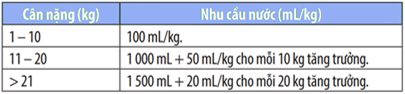Nhu cầu nước mỗi ngày của trẻ em theo cân nặng theo khuyến nghị của Viện dinh dưỡng vào năm 2012 được mô tả như trong bảng sau: