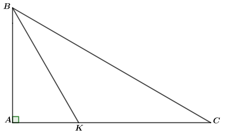 Cho \(\Delta ABC\,\)vuông tại \(A,\) điểm \(K\) nằm giữa \(A\) và \(C.\) So sánh \(BK\) và \(BC.\)